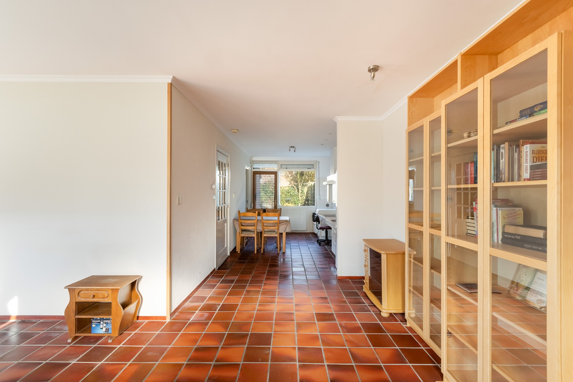 De woonkamer is een fijne leefruimte met plavuizen vloer en een houtkachel die direct sfeer brengt. Zie je het al voor je? Op een frisse avond lekker bij het knisperende vuur, terwijl de radiator zorgt voor extra comfort. Dankzij de uitbouw aan de achterzijde is er prettig veel leefruimte ontstaan.