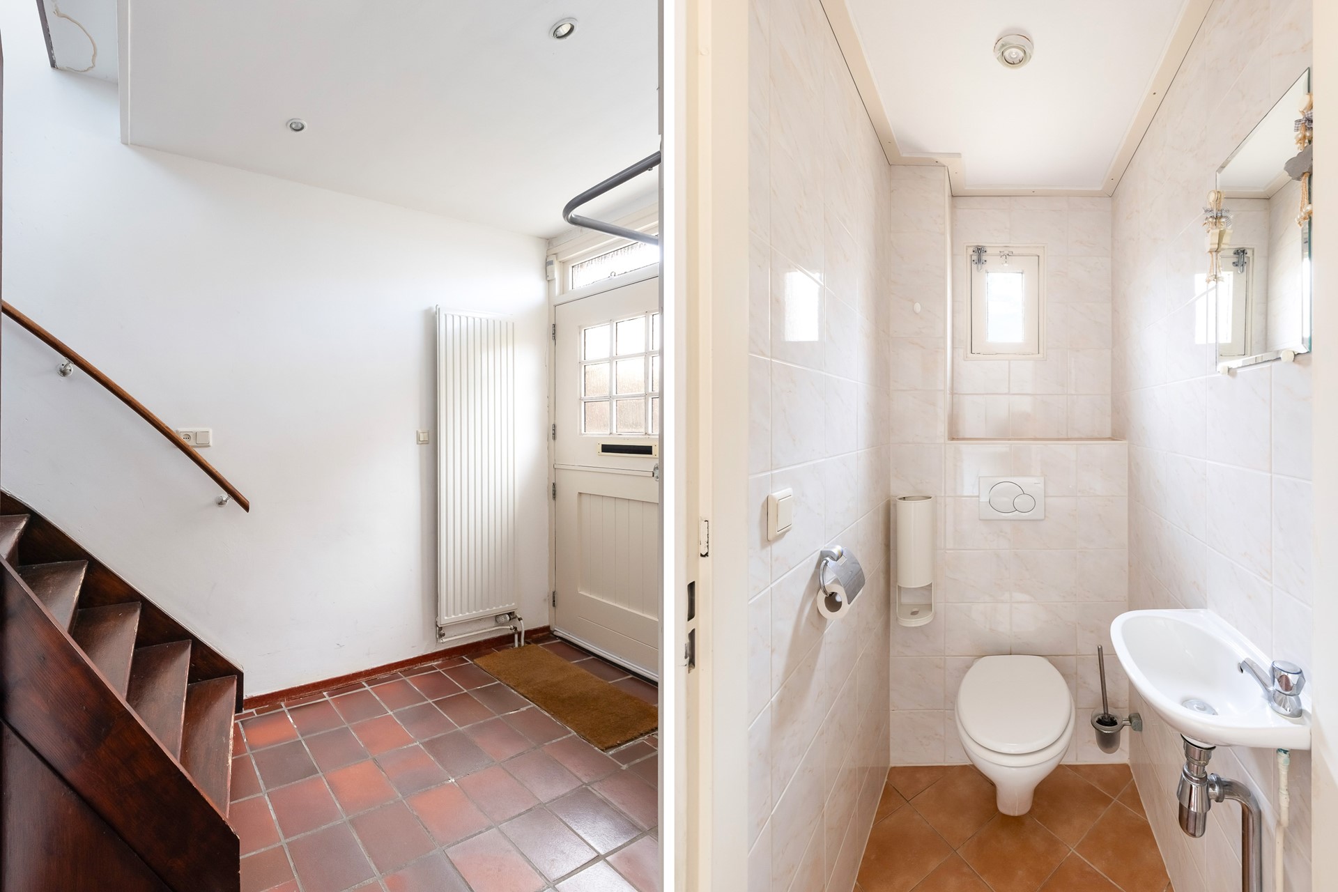 Via de entree kom je in de hal met toilet, trapkast en trapopgang naar boven. Vanuit hier loop je door naar de woonkamer.