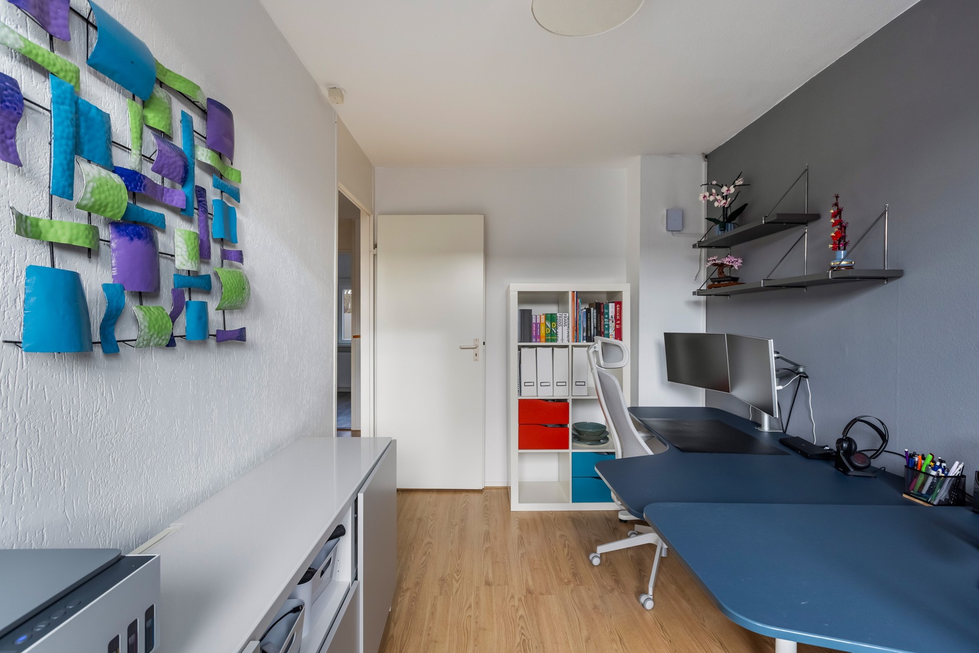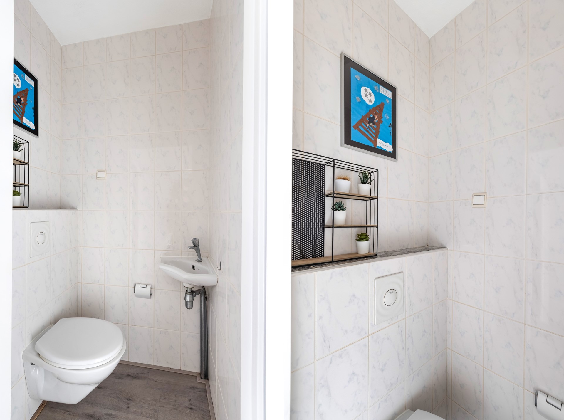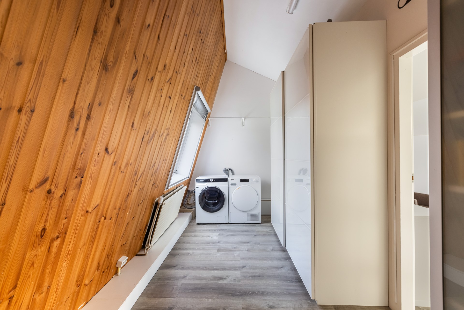 De zolder is een waardevolle toevoeging! Dankzij de brede dakkapel (2019) met kunststof kozijnen, horren en een elektrisch rolluik is hier een volwaardige ruimte ontstaan. Ideaal als werkkamer, logeerkamer of speelruimte. De afwerking met pvc vloer, wasbak met spiegel, Hue spots en nette schotten geeft een verzorgde uitstraling. De ruimte is gesplit, aan de voorzijde is een Velux dakraam geplaatst en vind je de aansluitingen voor de wasmachine en droger.